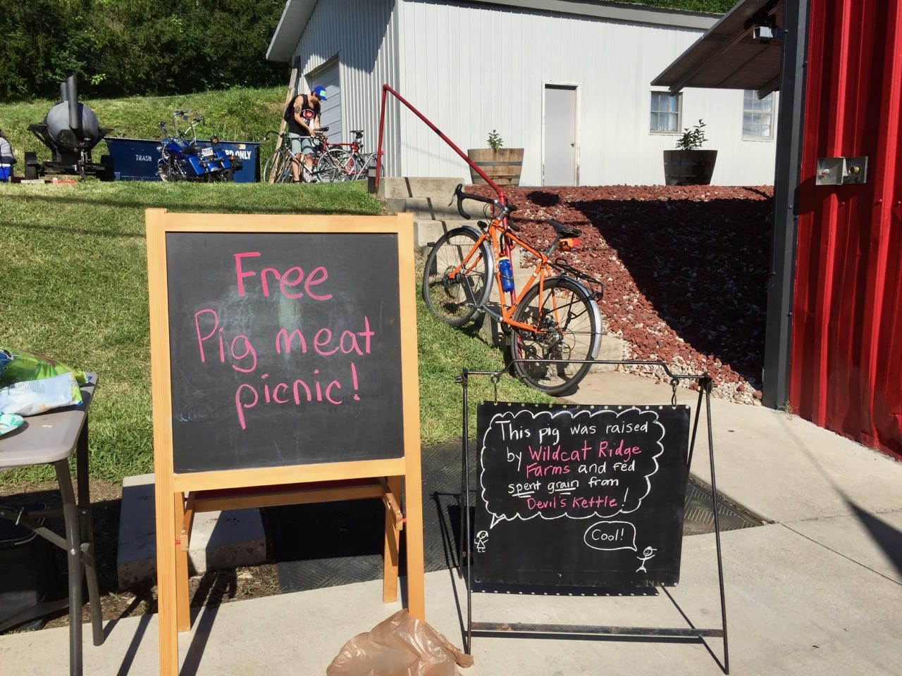 Saturday evening, a Free Pig Roast was hosted by Devil’s Kettle Brewing for homebrew judges and the general public. The pig and fixins were fantastic. The pig was raised by Widcat Ridge Farms and fed spent grain from Devil’s Kettle Brewing.