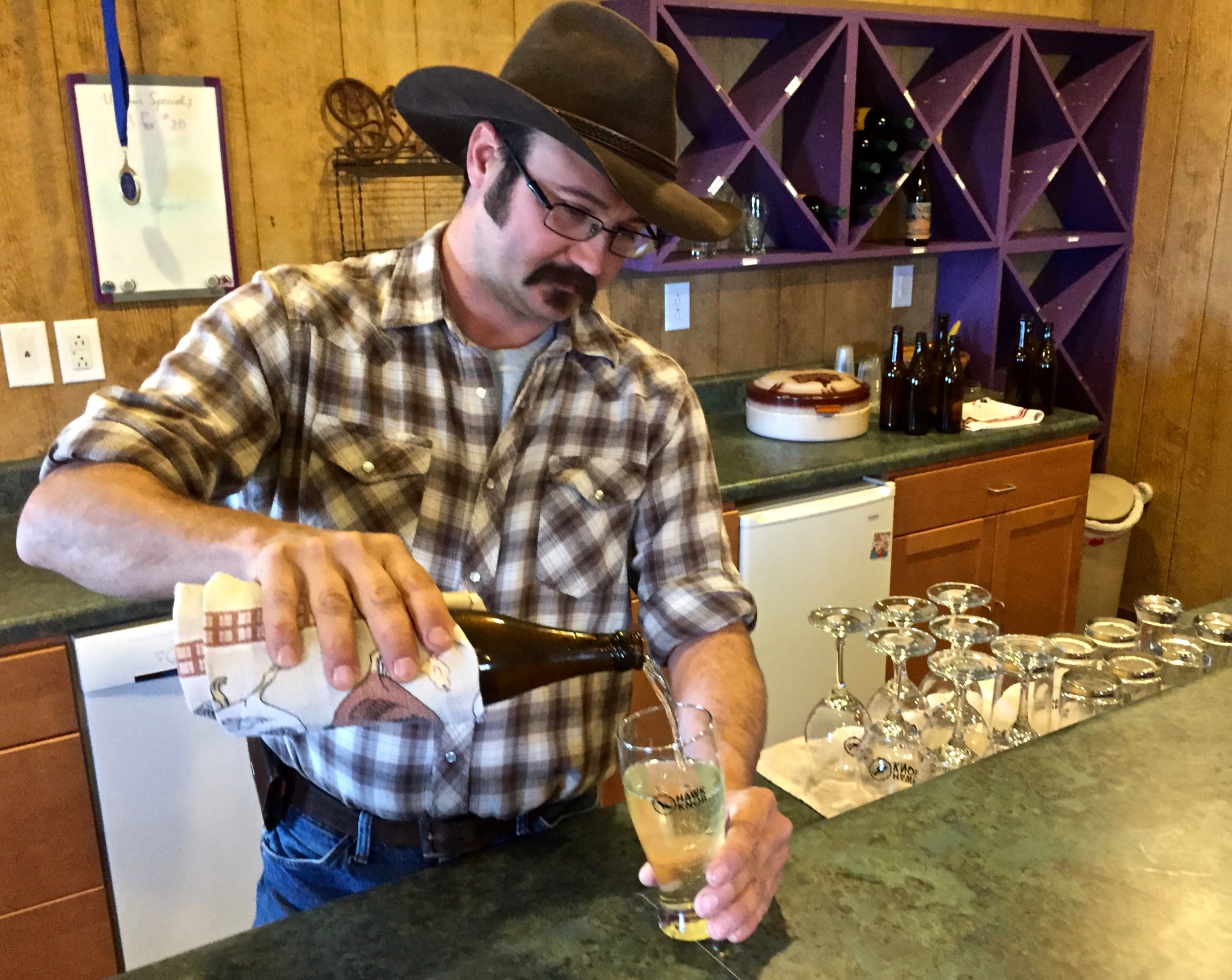 Josh Bennett pours a sample at the Hawk Knob tasting room.